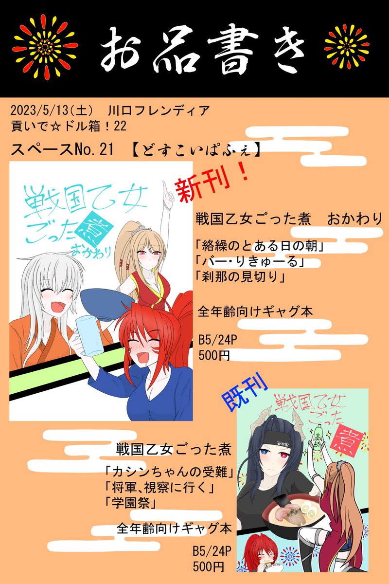 ドウセツさんが思いっきりお品書きと被ってPRしてくださったので、新刊サンプルと一緒に改めて貼らせていただきます 頒布は本のみですが良ければ当日もよろしくお願いします twitter.com/hanafudadekina…
