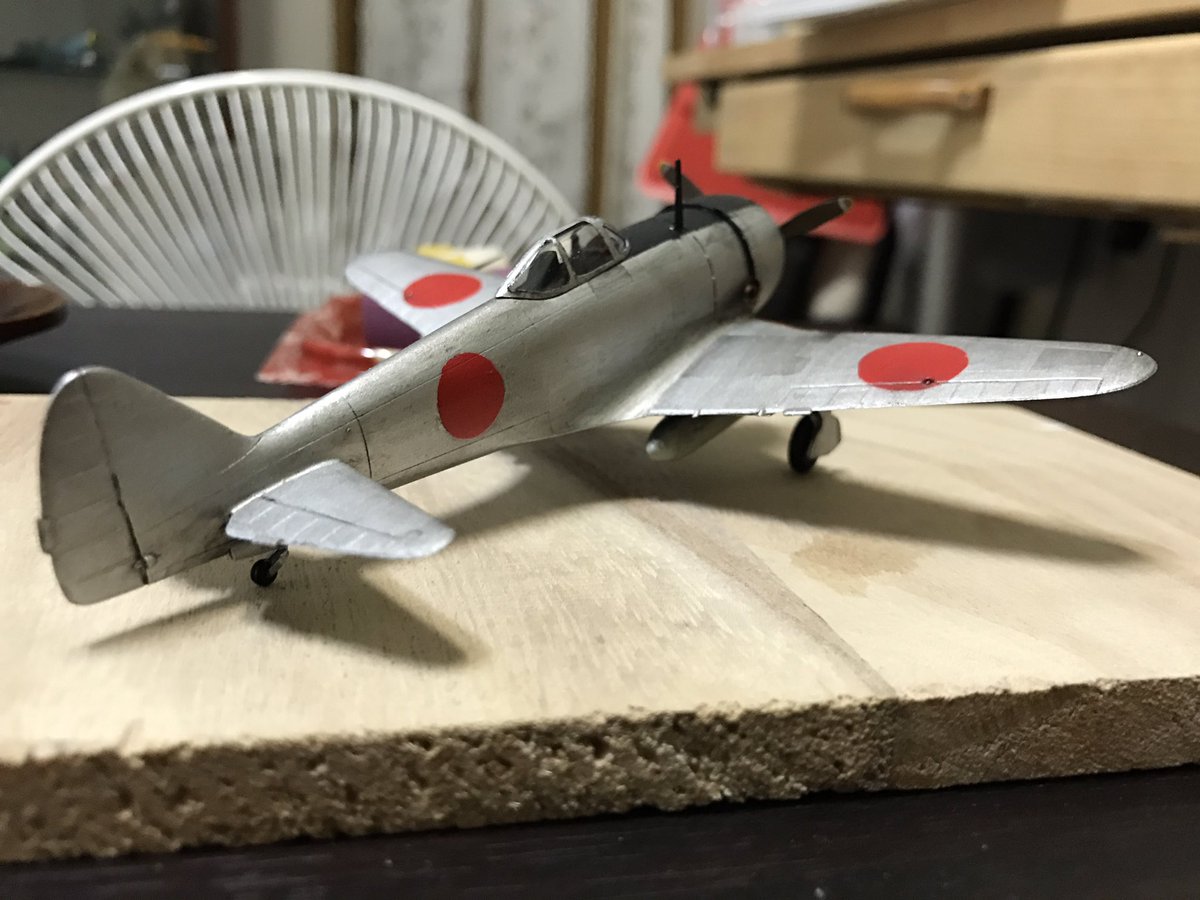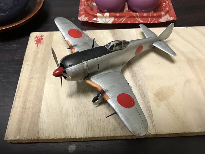 ハセガワ72の鍾馗。自分でパーツを切り分けたりバスタブみたいな操縦席など低価格の魅力があった。風防の後ろの黒は無い方が好みなので塗らず。日の丸や機内に煤以外は水溶きアクリルで塗り心地が良し