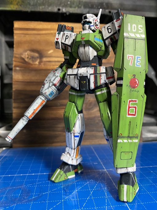 1 10 納得いかないのでガンキャノン仮組み。黒味が強いのとクソダサ手描きマーキングが不満なので塗装落としてやり直そう #ガンプラ 22/04/13 19:20