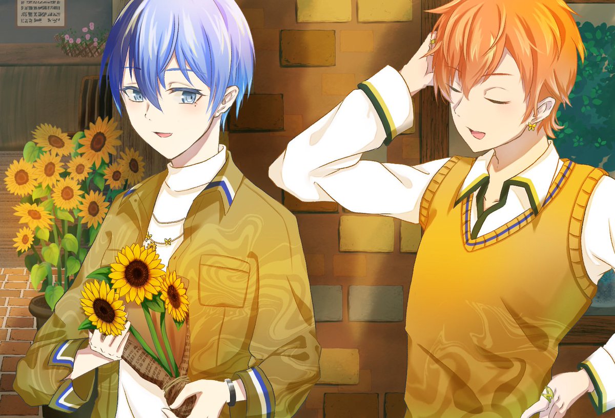 1 6 イベ衣装好きだ…😇 背景も頑張りました🌻🌻 #prsk_FA #イラスト練習中 #青柳冬弥 #東雲彰人 22/07/13 23:47