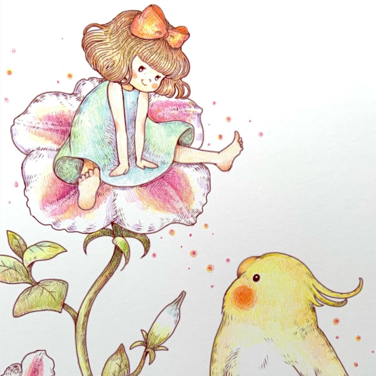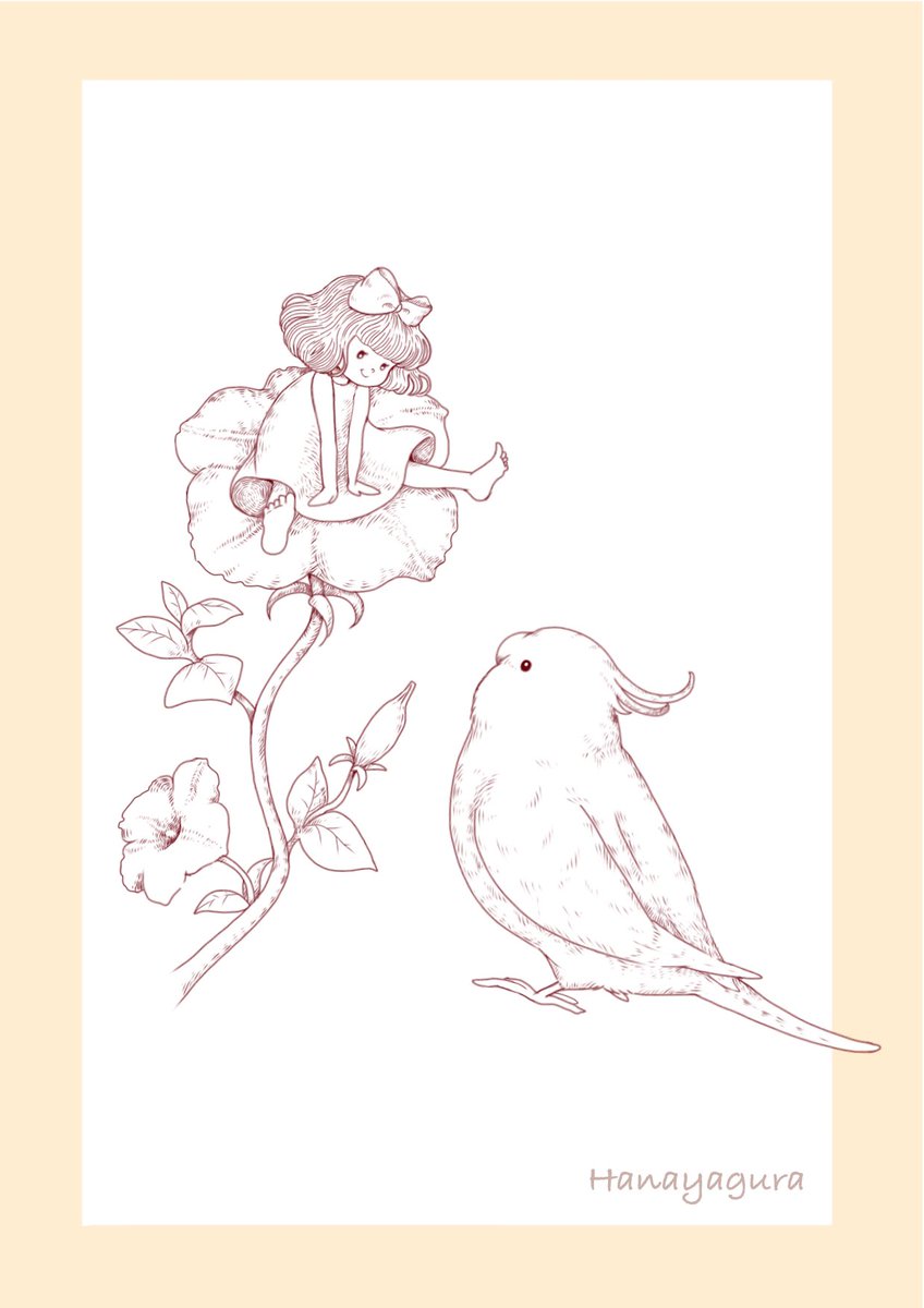 【ペチュニアにのって】 Minneでお迎えできるようになりました♡✨ お気に入り、フォローなどしていただけたら嬉しいです🌸٭•。。.*・゚ .゚・* minne.com/@hanayagura #オカメインコ #イラスト