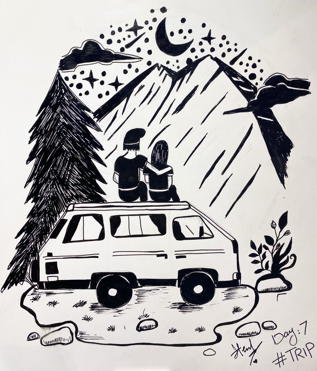 Day : 12 FORGET. #inktober2022 #inktober2022forget #inktober “Myosotis arvensis, known as forgot-me-not flower”