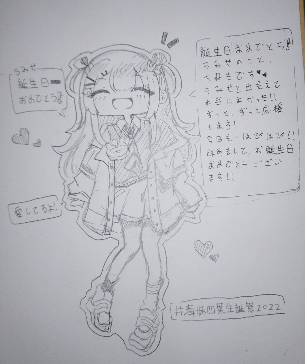 ❑#海妹四葉爆誕祭2022❒ うみせちゃん!!誕生日おめでとう🥳‼️ 誕生日グッズ絶対買います🍀 うみせのこと大好き、これからも応援しますーー👊‼️ (ちなみに明日私の誕生日、はぴ💛) #Yotsuh_Art