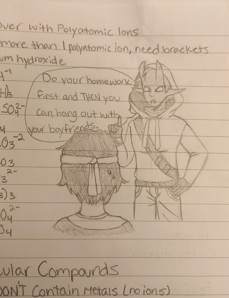 "Do your homework first and THEN you can hang out with your boyfriends!" a doodle during science class #badboyhalofanart #sapnapfanart
