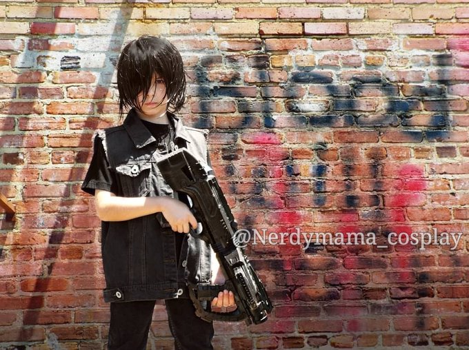 Perfect wall to do this Daryl cosplay with! 🖤❤ #daryl #daryldixon #twd #thewalkingdead #daryldixoncosplay #thewalkingdeadcosplay #normanreedus #kidcosplay #cosplay