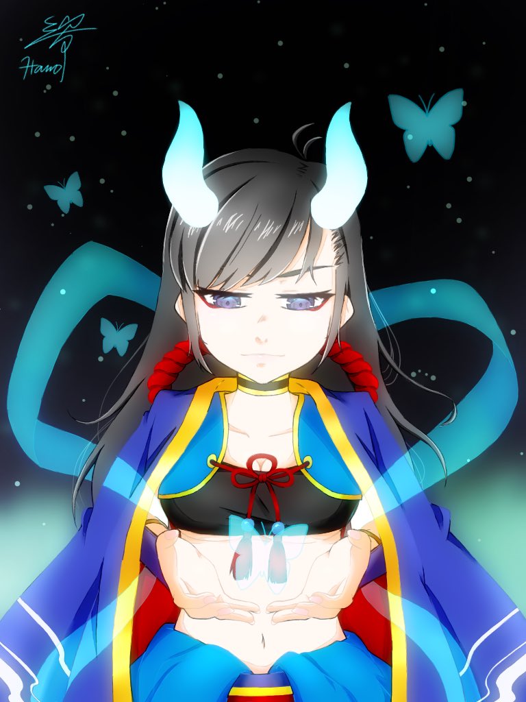 #このタグを見た人はラフ画とその完成絵を見せる ↑ずっとやりたかった。 ラフ画は片目しかないし蝶々飛んでないし色々無いし手もあやふや…よく描けたね私…