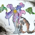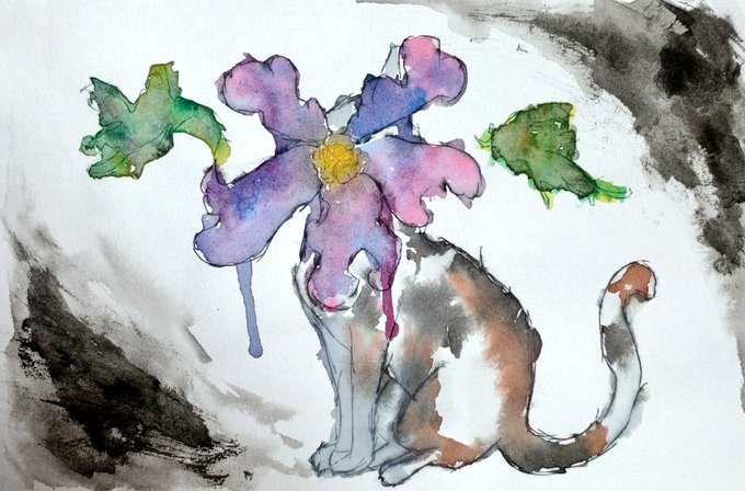 0 1 高二の時に描いた絵が出てきた #アナログイラスト #昔の絵 #水彩画 #猫 #お花 22/04/21 23:39