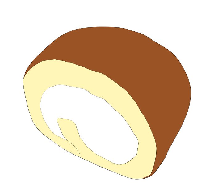 新しくイラストを描き始めました!まずは線画→下塗り→影や質感の1段目。少しずつ進めて完成させます~(о´∀`о)☕️ #スイーツイラスト #ロールケーキ #デジタルイラスト