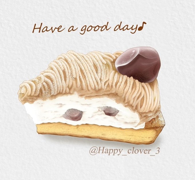 3 18 おはようございます(* ´ ▽ ` *)ノ☕ #食べ物イラスト #スイーツイラスト #栗ケーキ #マロンケーキ #イラスト #foodillust #foodieart 22/09/27 08:48