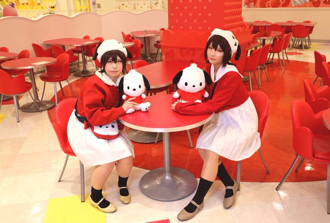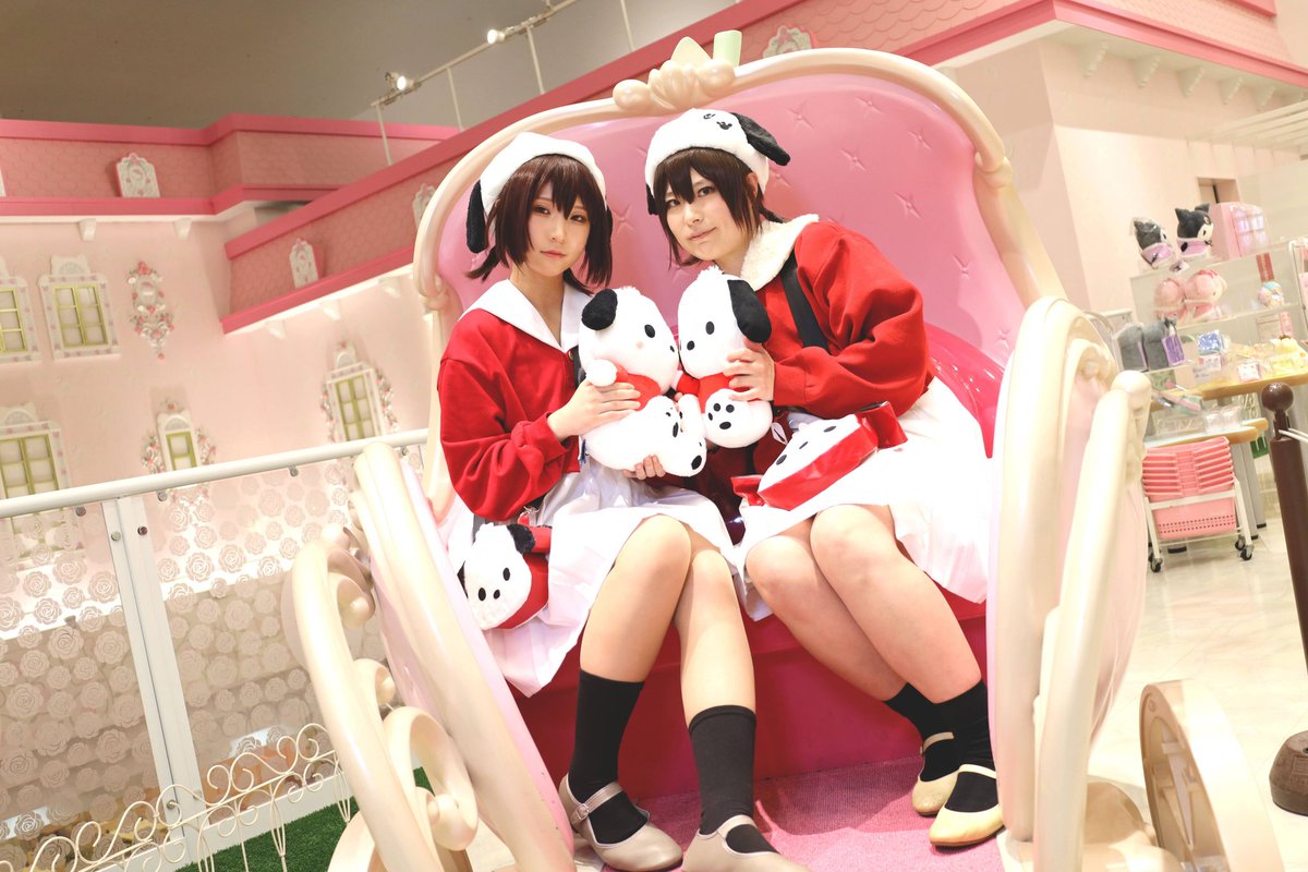【コスプレ】 ゆるゆり×サンリオコラボ 💙W結衣×Wポチャッコ❤️ 結衣:ゆーいちさん( @U1_1001 ) 📸:なのさん( @Nano_FC_Laki )
