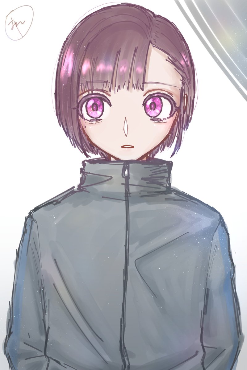 ショートでちょっと男装っぽいユノちゃんを描いたよ✌️✌️✌️ 男装というより女の子らしくないユノちゃんって感じになったかもしれない