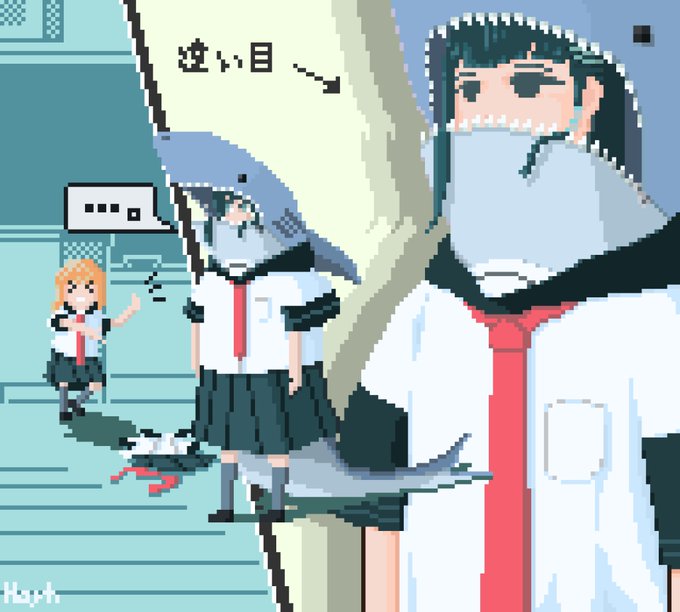 2 10 夏ですね…サメ…ですね🦈 #pixelart #海の日 23/07/17 15:01