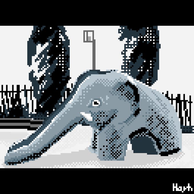 20230325_団地のゾウ ワンドロ 企画_つきさん 元写真_鮫島さん #pixelart #イラスト twitter.com/wyumhn/status/…