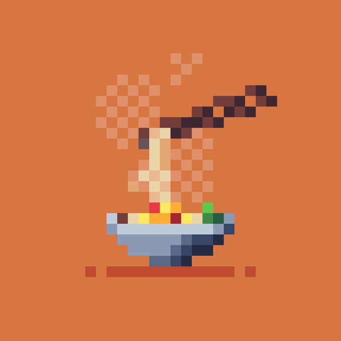 たぬきうどん 10分ドットが今日は静かなので、Discordお話ししながら描きました。(10分ドット自主) お題は水曜ドット打つデイの突然10分ドットのお題の中からお借りしました。 #pixelart