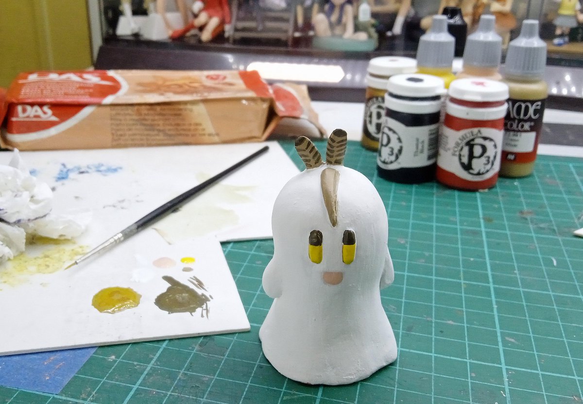 Hand-made Ghost Mumei figurine Medium: DAS Modeling Material Clay & Acrylic Paints Camera: Xiaomi Redmi 9A Crop & Watermark: Snapseed App #drawMEI #memeMEI #HoloCouncil #MythOrTreat #ArtsAndCrafts