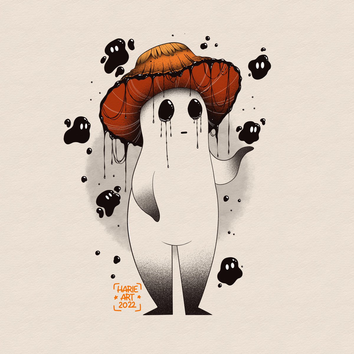 Jour 4 - Champignon 🍄 Ce petit "bonhomme-champignon" inspiré des coprin noir d’encre a était vrai plaisir à dessiner ! J’espère qu’il vous plaira autant qu’il me plaît !🥰 #drawtober #drawtober2022 #inktober #inktober2022 #inktoberday4 #digitalart #mushrooms #mushroomsdrawing