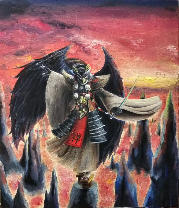 『試練』 決意が誠か見極める 一歩でも道を踏み外せば即終結 平成が終わる前に出来て良かった❗️ #油絵 #絵描きさんと繋がりたい #アナログ絵描きさんと繋がりたい #アナログ #絵師さんと繋がりたい #烏天狗
