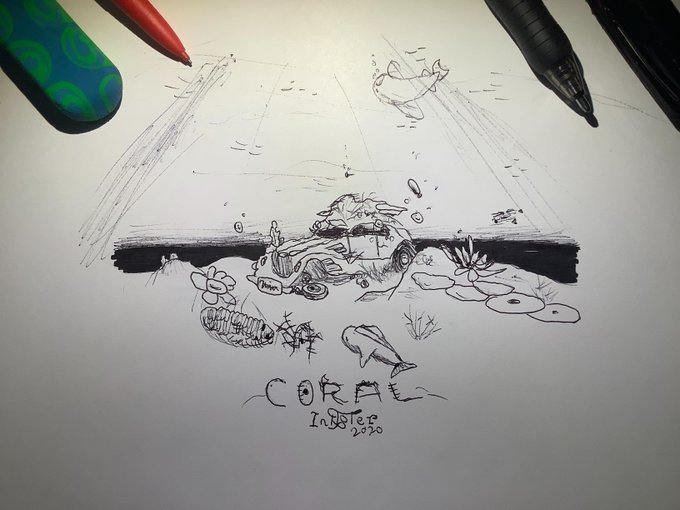 #inktober2020coral smh, not much coral reef representation but it'll do. fishies I like #art #artist #inkart #inktober #inktober2020 #inktoberday20 #inktober2020day20 #penart