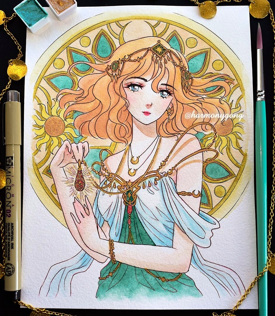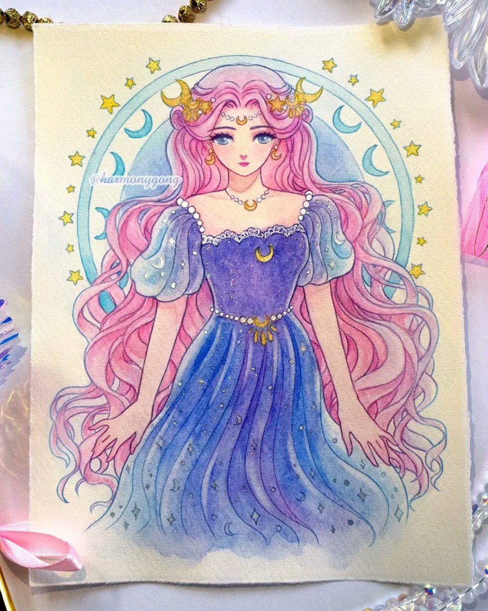A commission to draw a @Trungles princess in my style. 🌙💖✨ #ArtCommission #moonprincess #watercolor