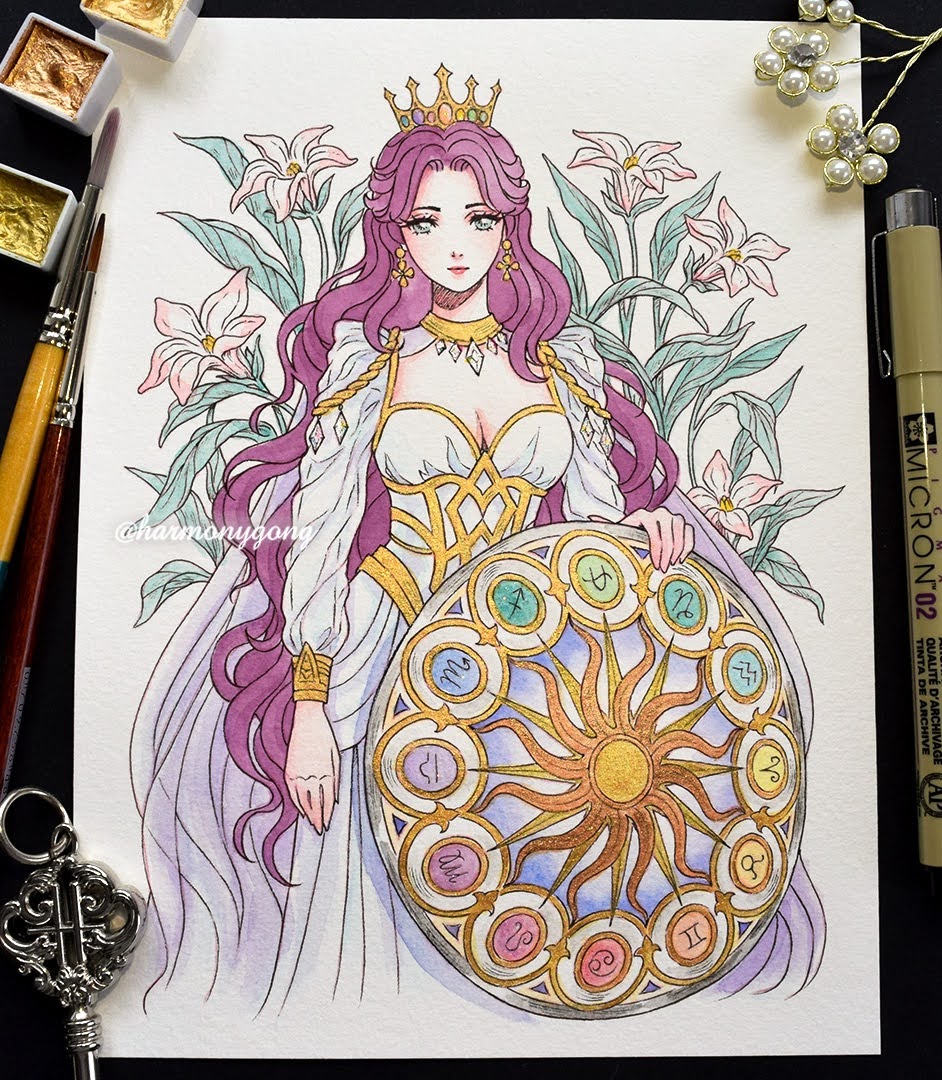 #Gongtober2021 Day 5: Regal 👑 Based on a photo from The Met's 'Heavenly Bodies' exhibit. #inktober #drawingoftheday #royal #queen #celestial #watercolorart #drawingchallenge