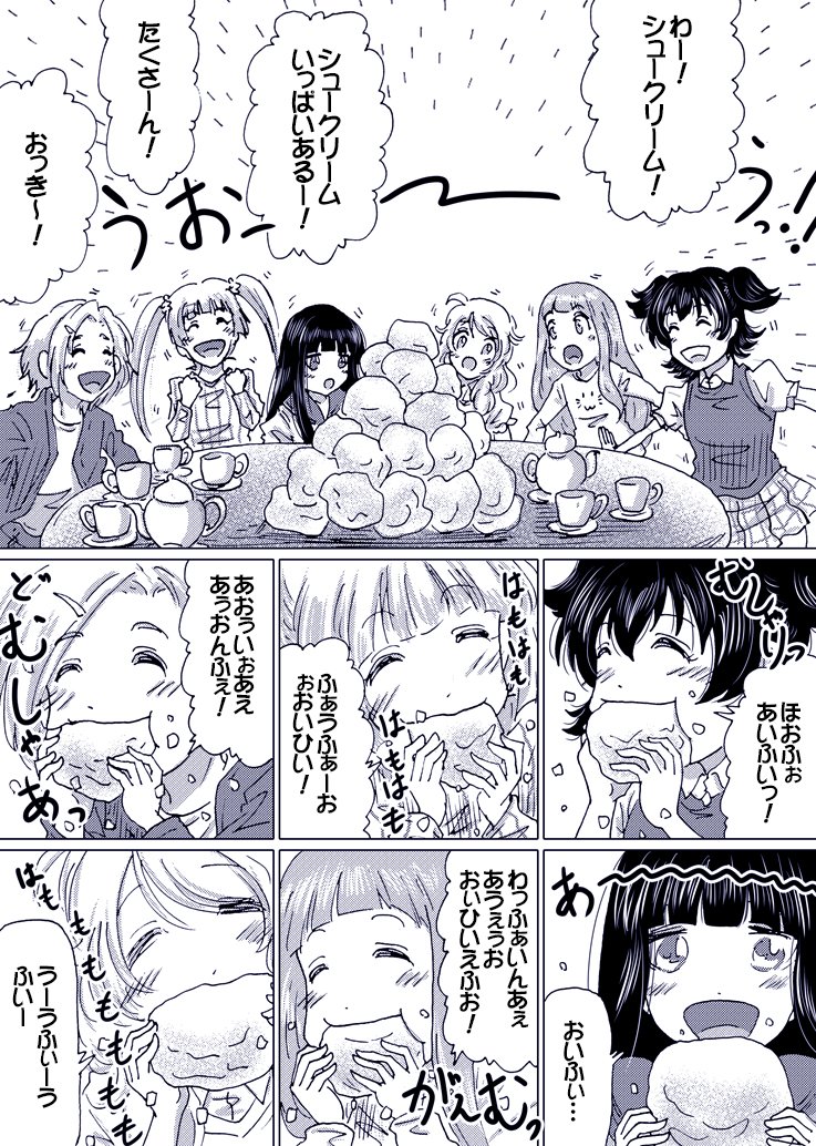 ちなみに喫茶店のマスターは4コマ目でぶっ飛んで気を失ったという… #斑鳩ルカ #佐竹美奈子 #五十嵐響子 #天ヶ瀬冬馬 #園田智代子