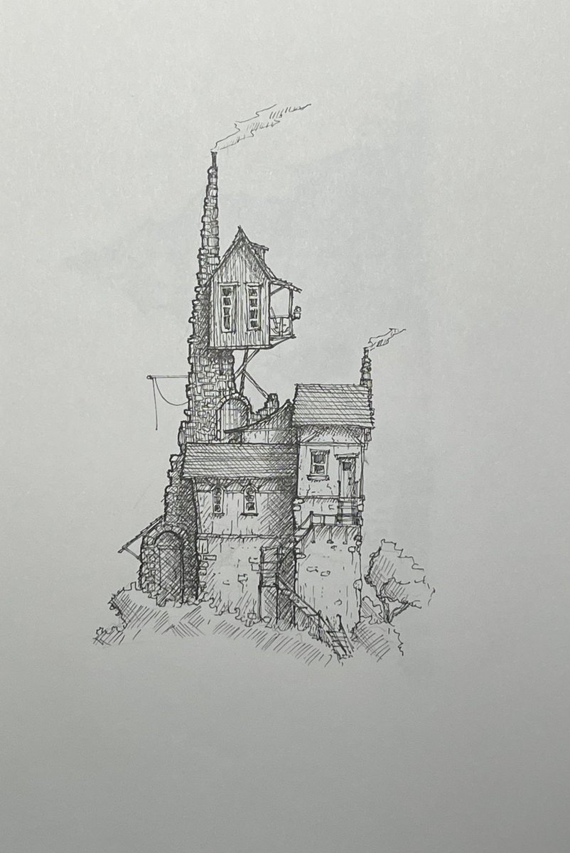 0 2 #ramshackle #inktober #inktober2022 #illpaintitlater #castle #spookyseason #darksouls #shanty #sketch #illustration 22/10/09 07:22
