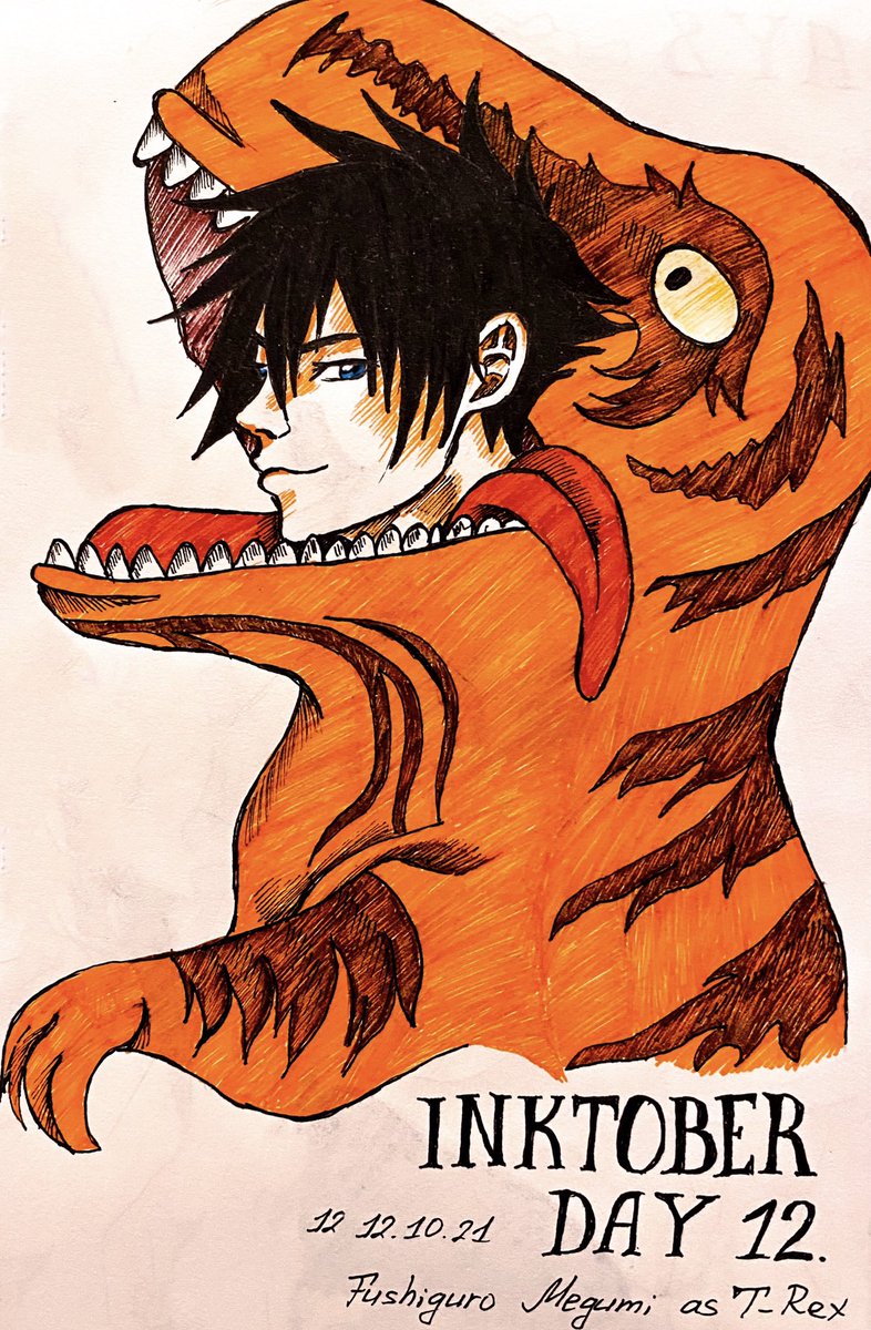 Поехавшие! Костюмы! Day 12!! #inktober #inktober2021 #jjk #jujutsukaisen #fushiguromegumi #fushiguro #dinosaur #trex #drawing #sketchbook #halloween