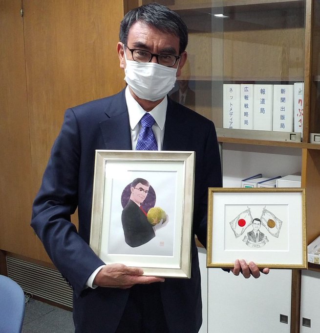 [ お知らせ ] 日本ドリアン普及協会さま(@DurianJpn )からのご依頼で、河野太郎さんのイラストを担当させて頂きました! 左の作品:山村遥 facebook.com/10478955160937… (掲載許可済)