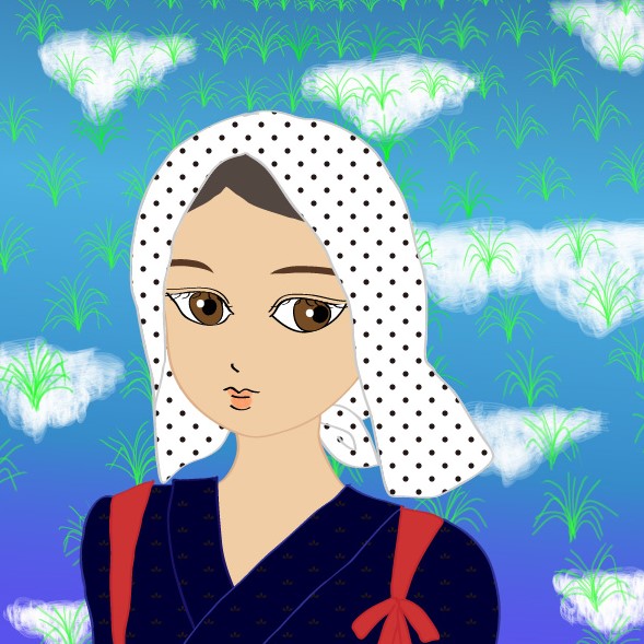 The sky and clouds are reflected in the rice fields. I drew a traditional costume for rice planting. #NFTCommunity #nftcollector #digitalart #Crypto #ETH #illustration #artcollector #openseanfts