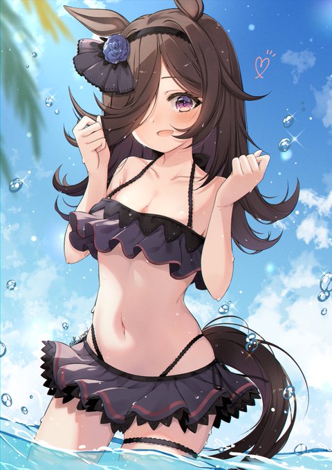 お兄さま!ライスの水着みてみてっ!! #ウマ娘 #ライスシャワー