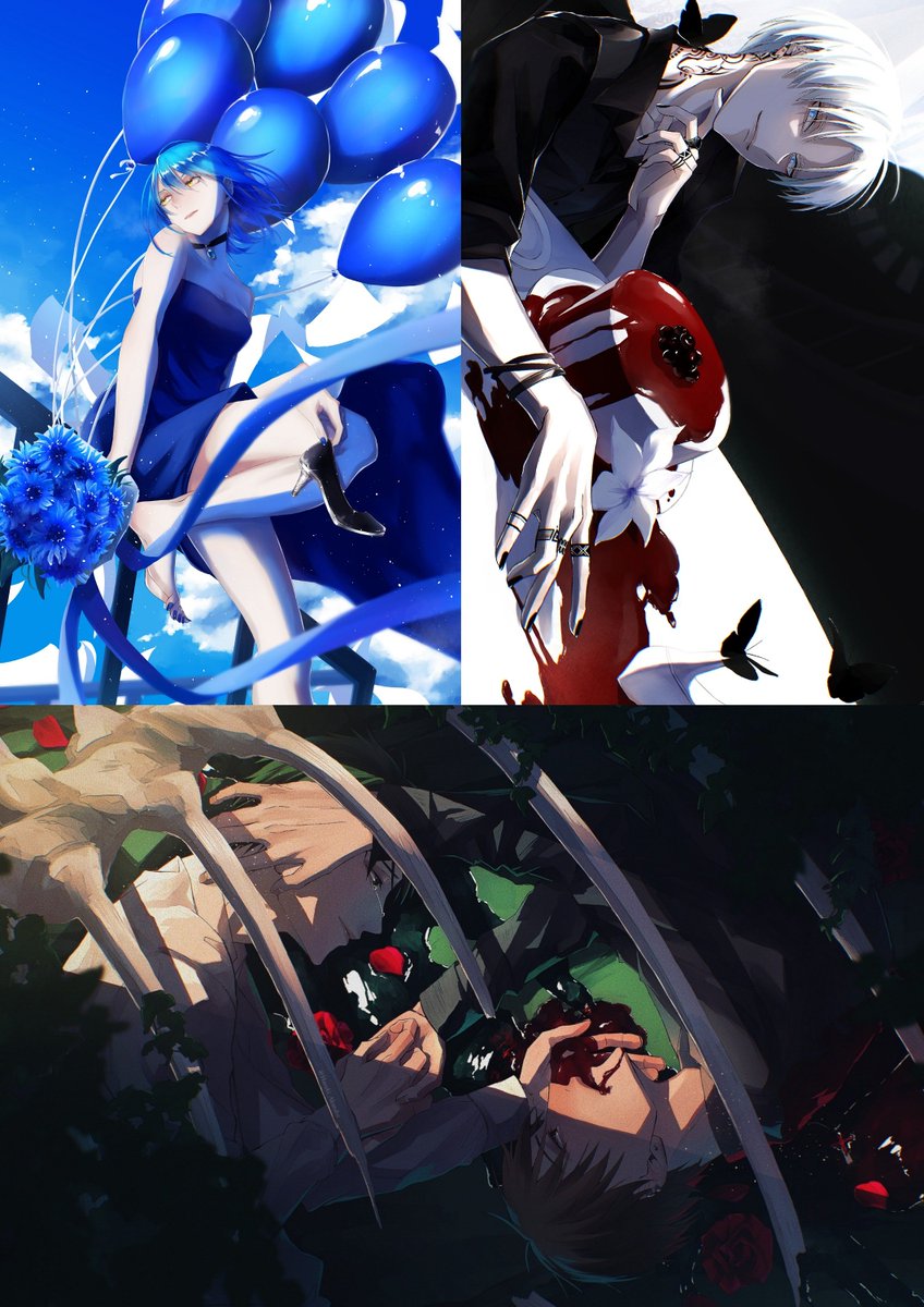 2 20 創作キャラ8人の誕生日絵まとめ 花と死をテーマに描いており、一枚目左上から 「自殺」「生贄」「犠牲」「殺人」「傍観」「不変」「心中」 #This_IDEAL_Is_Mine 23/04/18 17:42