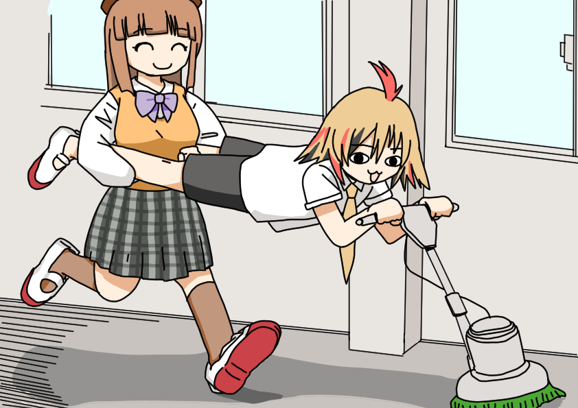 遊んでそうで掃除をしている柚原さんと風見さん #絵やんくっく #かぴそ