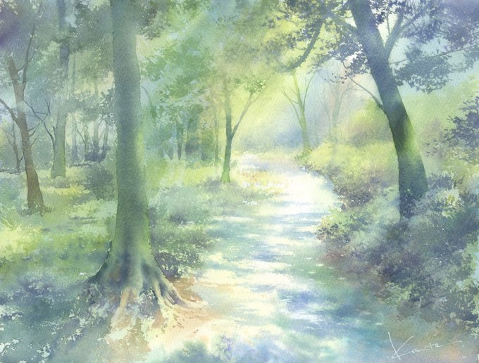 42 442 #Watercolor #水彩画 木漏れ日のぼかし影のいいやり方がねー どうしたらいいのか見つからない。 22/12/10 11:11