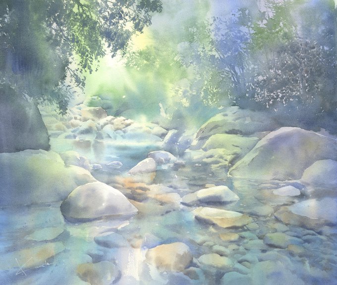 77 648 Sound of water 71-54cm #水彩画 #watercolor 23/04/28 12:03