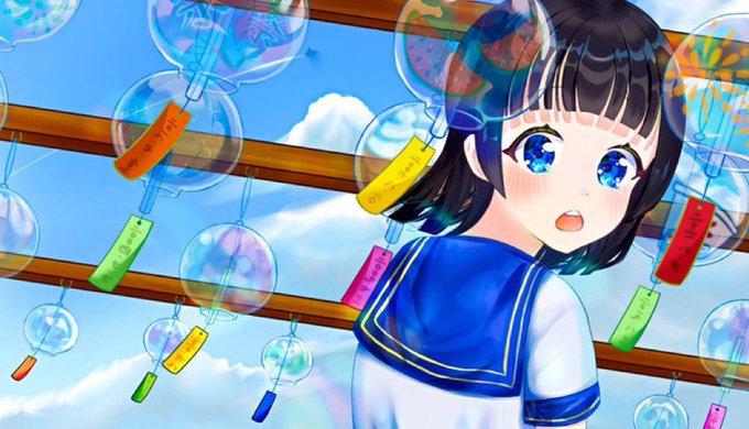 ←一年前 🐇 今→ ちょうど一年!絵柄は少し変わったのかな? どっちの絵も好きぃ🥰 また風鈴のイラスト描きたいなぁ #イラスト成長記録