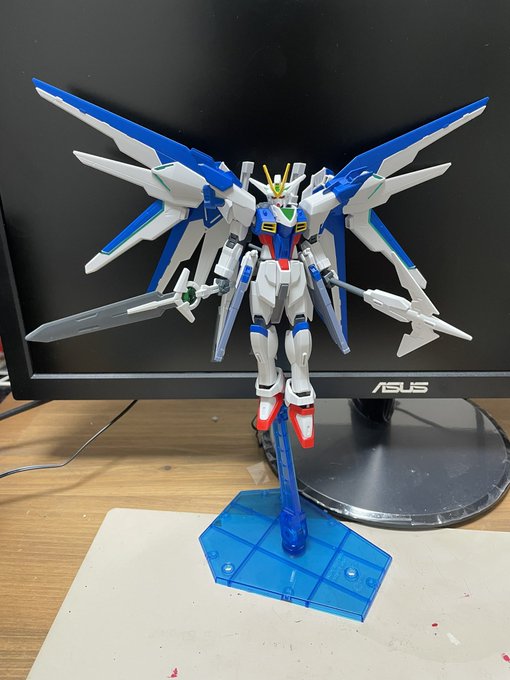 なんだかんだあって… 完成しました!! フリーダム・アルビオン!! 敵の英雄の機体として敢えてヒロイックなカラーにしました…!! こいつも今後のストーリーに登場します! #ガンプラ改造 #ガンプラの画像貼るとRTされると聞いて #自由を求める翼