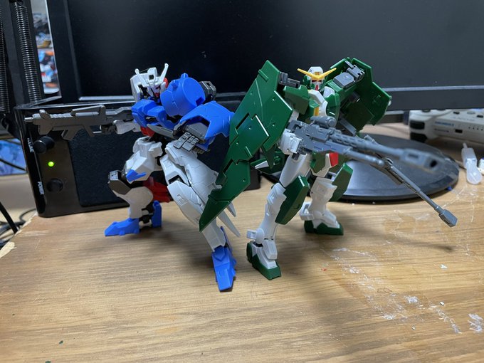 完成しました…! ガンダムオズワルドと ガンダムジャスティスG (GはGuardian) です! なんとか綺麗に纏って良かった! これも出ます!てか出します! #ガンプラ改造 #ガンプラの画像貼るとRTされると聞いて #自由を求める翼