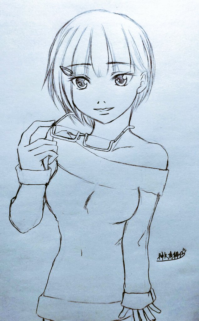 ヨッちゃん(@yocchan1acount)へ。夏場の作業中をイメージして自分の手癖で描いてみたなんちゃってヨッちゃんをどうぞ。 私が描くとどうも可愛げがどこかへ出張しちゃうけど(爆)