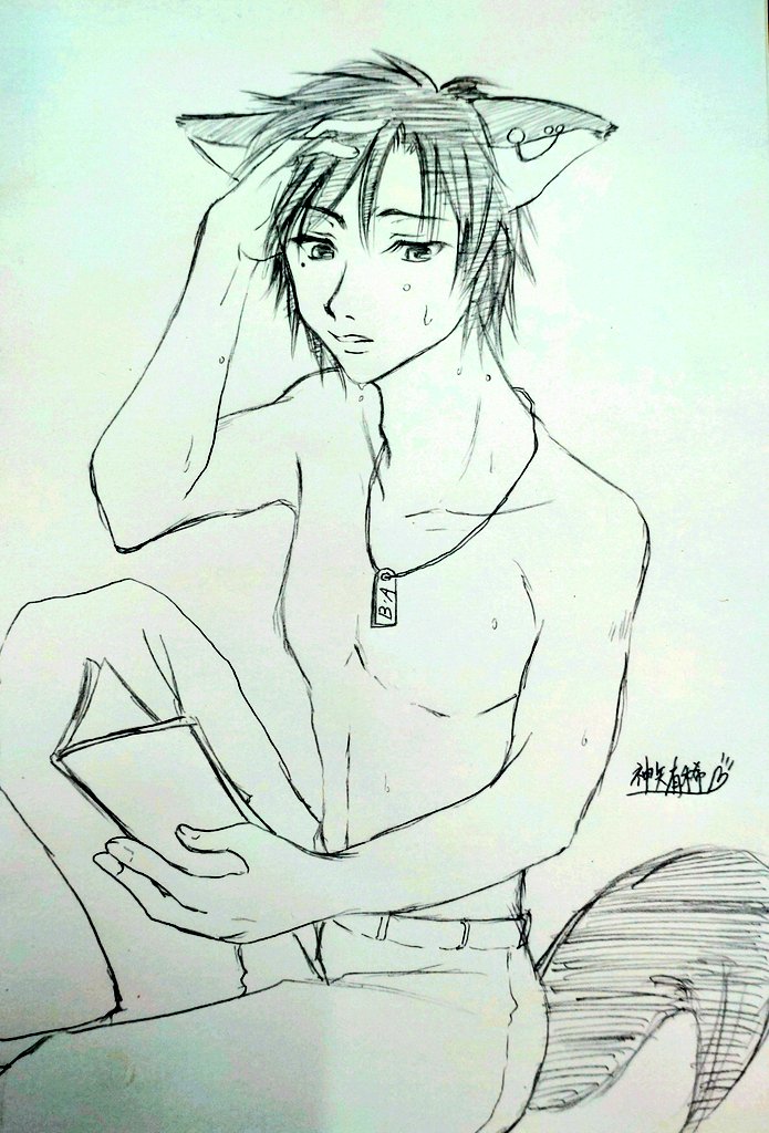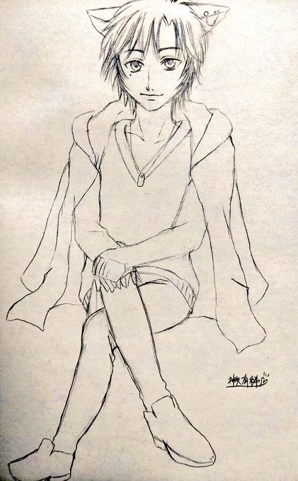 @kusanagi_yuduru #ゆづる作品ファンアート リント君のつもりです! 取り急ぎ鉛筆描きを! カラーは時間足りませんでした(´;ω;`)