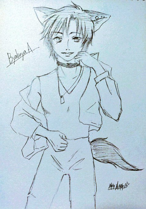 リハビリ兼ねた白夜さん。 久しぶりに描いたよ。 #噛みあーと @byakuya_sun