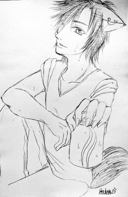 せっかくのお休みだからなにか描こうと頑張ってみたけど今日はなんか調子が出ないなぁ… 水分補給はしっかりしましょうね!ヾ( -`д´- #噛みあーと @byakuya_sun
