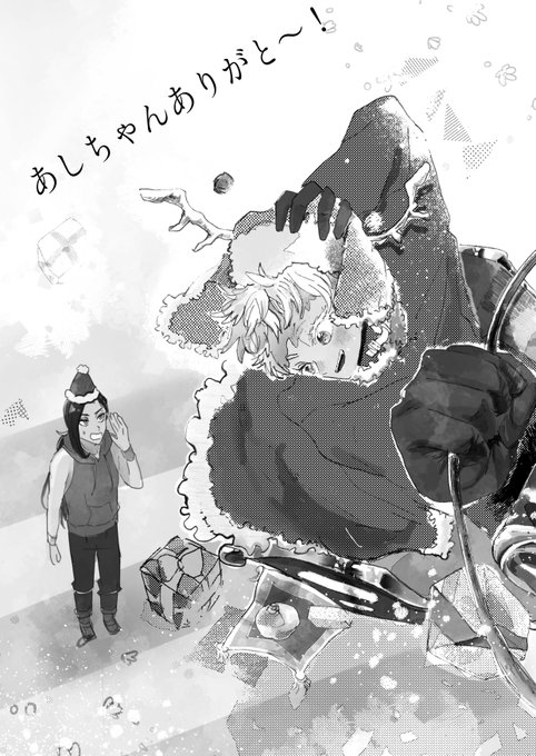 あし(@manbocat )さんと共同で描かせていただいた無配〜!! 公式にないイベントということでサンタ🐍とソリ☀️でした あしさんありがとう🤍