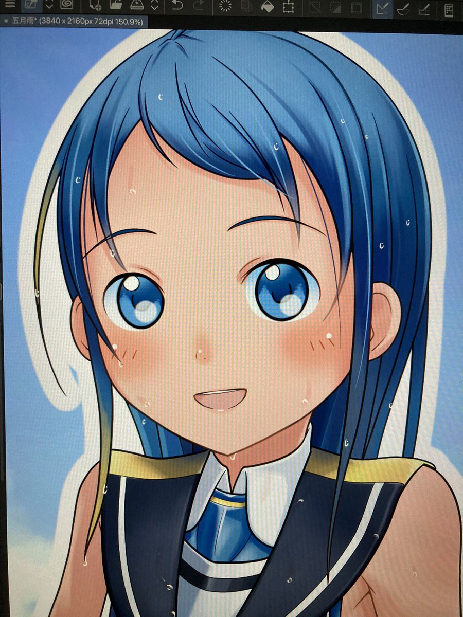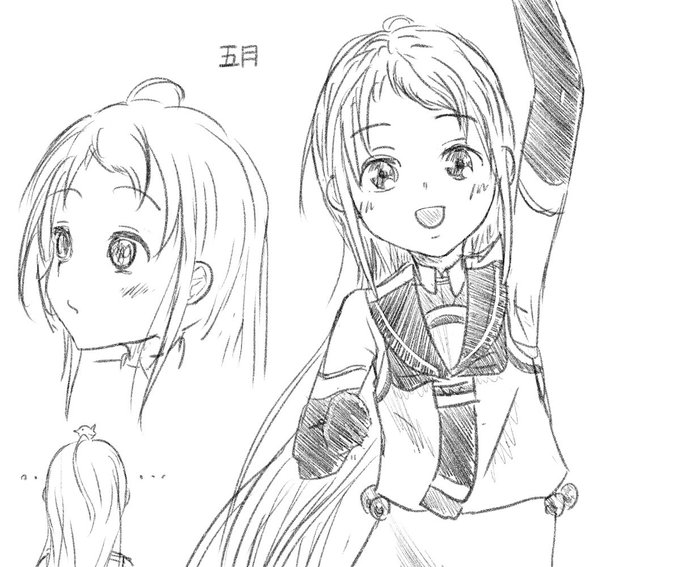 五月雨ちゃん おててのアタリがなかなかうまく描けず時間が足り無さそうだったのでラフに色塗り! またいつか清書するかも #艦これ版深夜の真剣お絵描き60分一本勝負 #艦これ版真剣お絵描き60分一本勝負_20221004