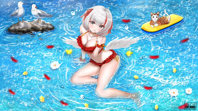 Do you wanna swim with me? It's warm here!! -Aozora Kurumi👧🏺👙 Art commish by @/AL88MZ 🖌️ Submission for the Aozora Kurumi fan art contest #KurumINK #fanart #Illustrations #VtuberEN #ENVtuber #AozoraKurumi #青空くるみ #アート #女の子 #イラスト好きな人と繋がりたい