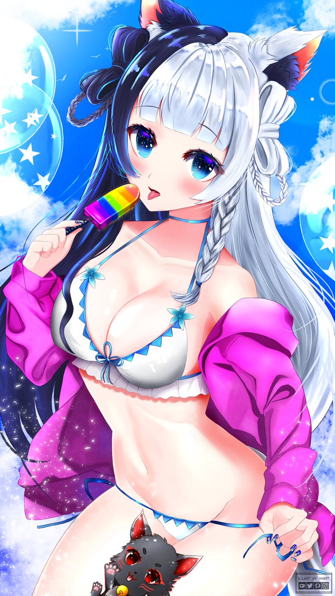 Do you want some rainbow ice cream or... → Yushiro 🍙🍦👙 Reiko Yushiro in a open jacket swimsuit ~ #Reikoyushiroart #VtuberEN #ENVtubers #fanart #illustrationart #digitalart #バーチャルYouTuber #可愛い #アート #イラスト好きな人と繋がりたい