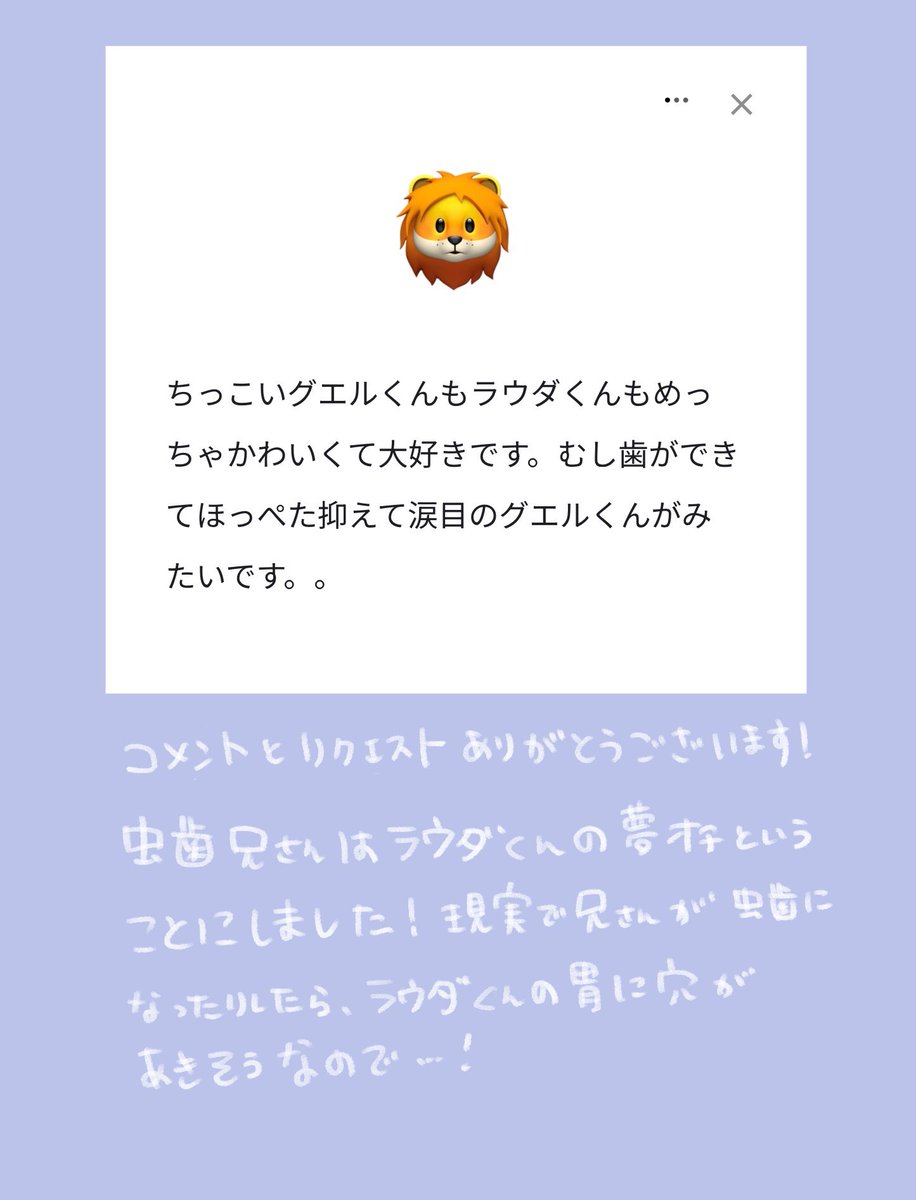 29 141 ⚠️ちっこいぐえる君限定⚠️リクエストその8です! 虫歯になってしまったぐえる君です🦁 23/07/02 13:23
