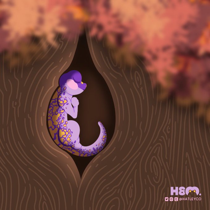 A little late, but Day 4: Knot of #inktober2021 ✨ Monica is sleeping inside a knot of tree, nestled in the coziness of the autumn weather. #hatleyandco #autumn #oc #inktober #procreate #artistontwitter #art