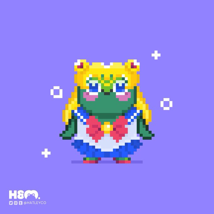 Hatley has transformed into #sailormoon ✨fulfilling his wish to become a magical frog~ #pixelart #pixel_dailies #ドット絵 #halloween2021 #anime