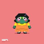 Our lil frog, Hatley, is dressed up as the doll from red light, green light scene in #squidgame 🚦 #pixelart #pixel_dailies #ドット絵 #halloween2021