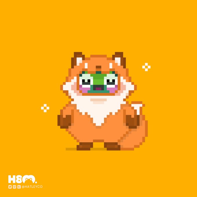Snuggled up in his fox onesie is the adorable lil’ frog, Hatley ✨🧡 #pixelart #pixel_dailies #ドット絵